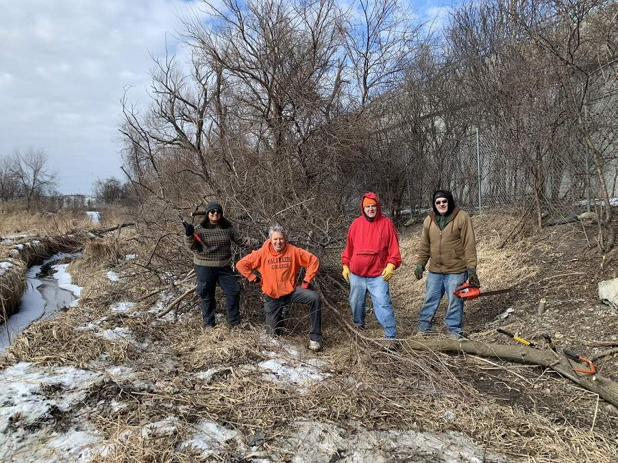 After an incredible Volunteer Day on September 13th, we had an even bigger showing for the the Volunteer Day on October 11, when we were fortunate to have NINETEEN volunteers show up to help us remove buckthorn, grapevines and teasel along the fence we share with the railroad, and around the northwest pond. As usual, we cleared the grate on the creek, allowing it to flow freely into the Des Plaines River and better support the wildlife in it, such as frogs, fish and snakes. We also mowed the maintenance trail next to the creek. Along with other hard-working volunteers, we were lucky to get help from Boy Scouts from various troops,